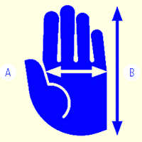 A Length of the glove from the top of the middle finger down to the wrist B (cm)